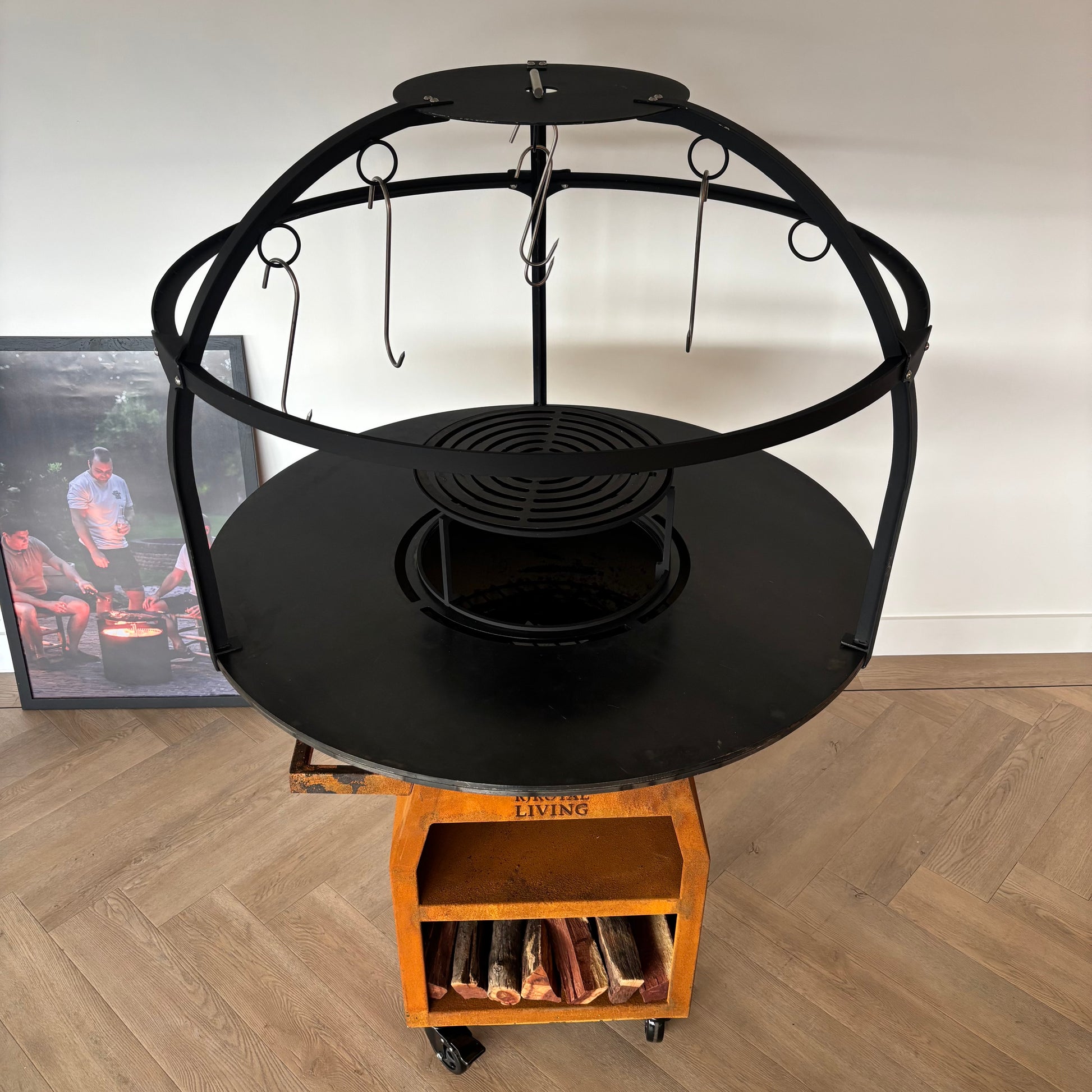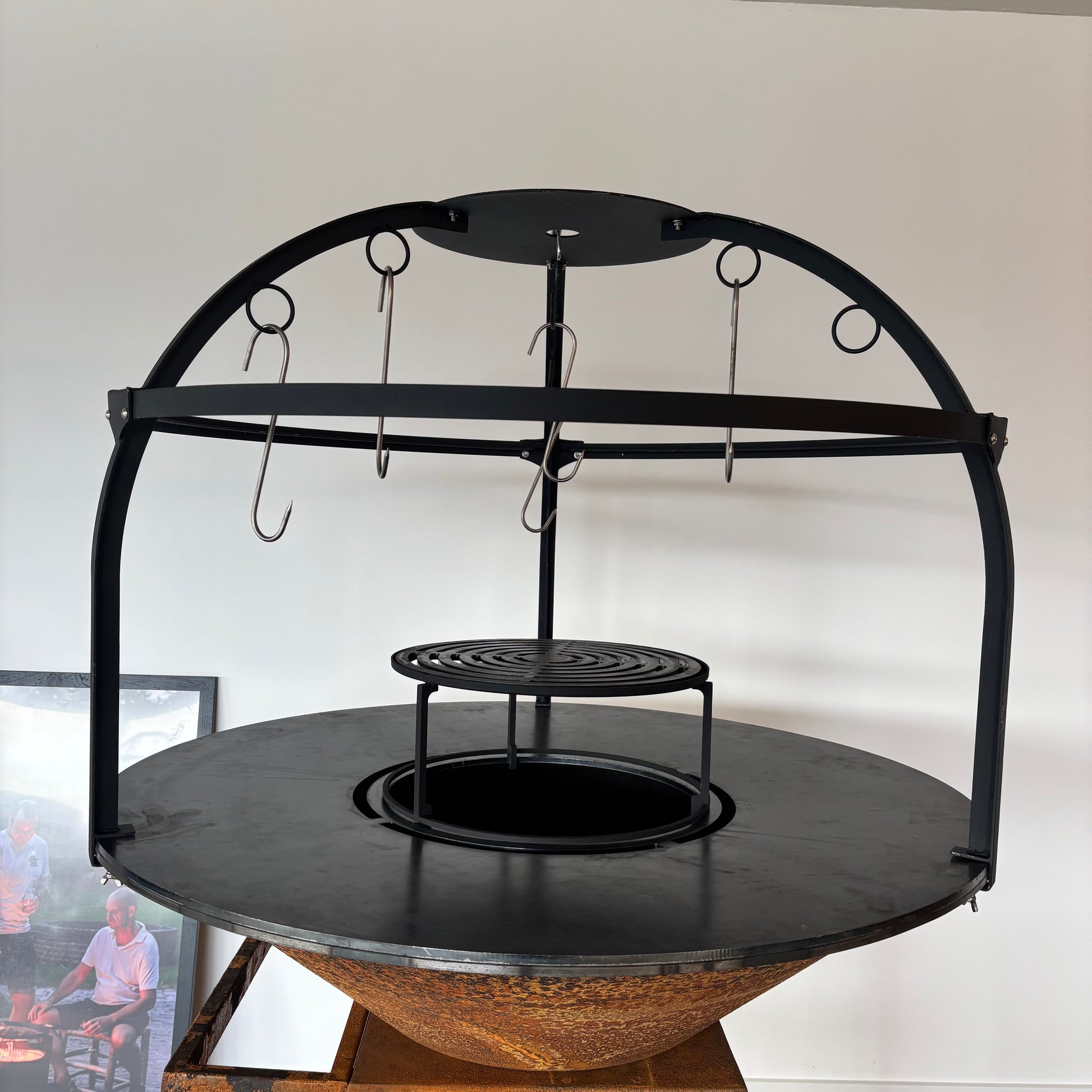 BBQ Plancha Cage voor de 100cm bakplaat maakt uw Plancha nóg completer! Perfect om mooie stukken vlees, groente of vis aan op te hangen om langzaam te laten garen. Of hang er decoratie aan om een fantastische beleving te maken op een evenement.