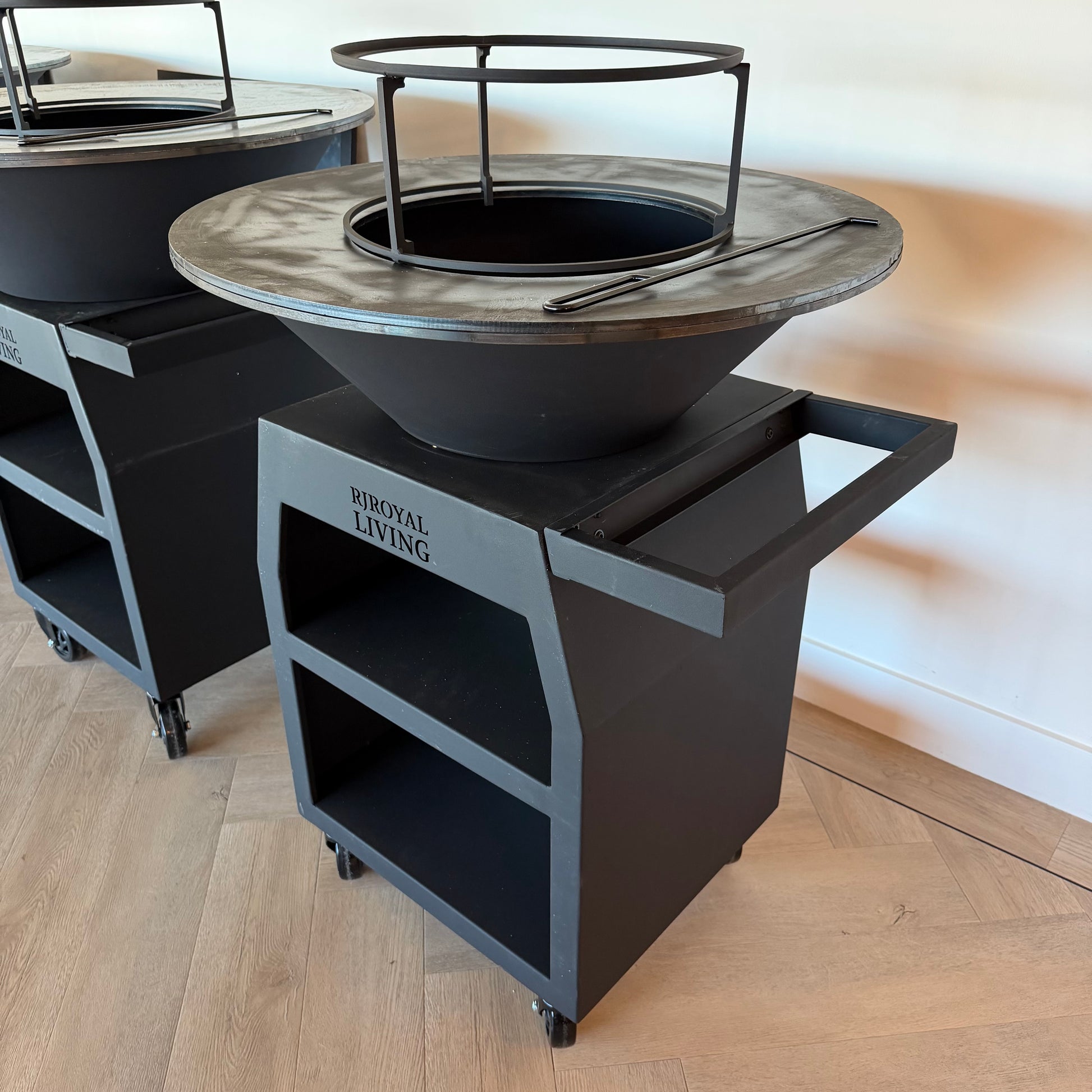 BBQ Plancha Grill Maestro Ø70cm Blackline - Met Grote wielen en houtopslag