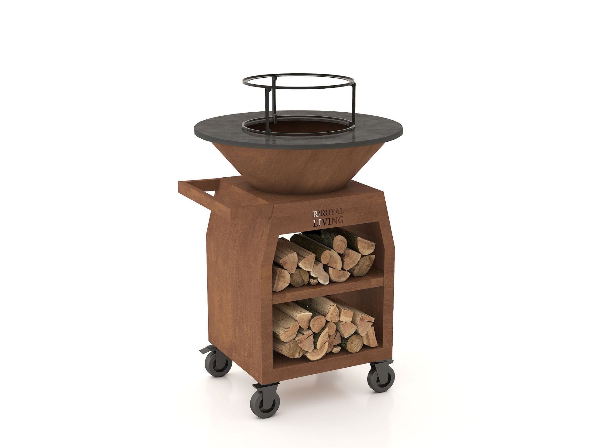 Vuurschaal of buitenhaard: Met een ideale hoogte van 96,5cm kunt u hem als vuurschaal gebruiken. Door zijn vorm en metalen bovenplaat geeft hij veel warmte en vanuit uw eettafel of tuin-set een prachtig zicht. Door de handige houtopslag heeft u altijd hout binnen handbereik en het oogt ook erg mooi.
