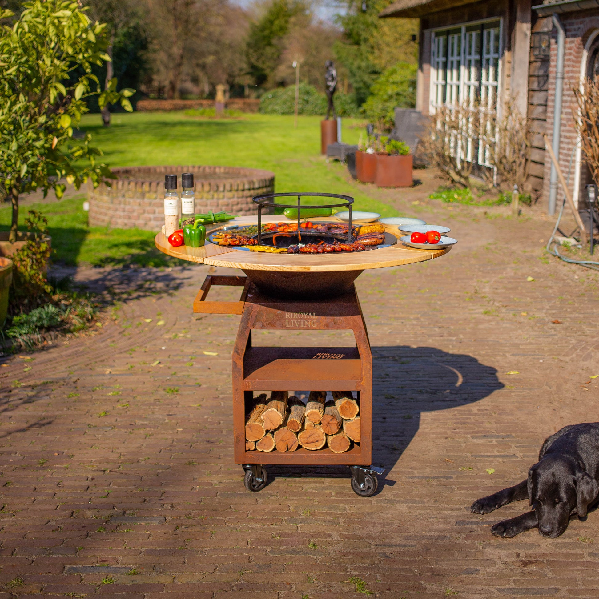 Outdoor BBQ Plancha grill: Deze cortenstaal plancha grill Maestro wordt compleet geleverd met stalen plancha kookplaat van 8 mm dik en 70cm Ø. De werkhoogte om te grillen is ideaal met 93,5cm (bukken hoeft niet). Deze kookplaat heeft een diameter van 70cm en biedt voldoende ruimte om je favoriete groenten, vlees- en visgerechten te bereiden.