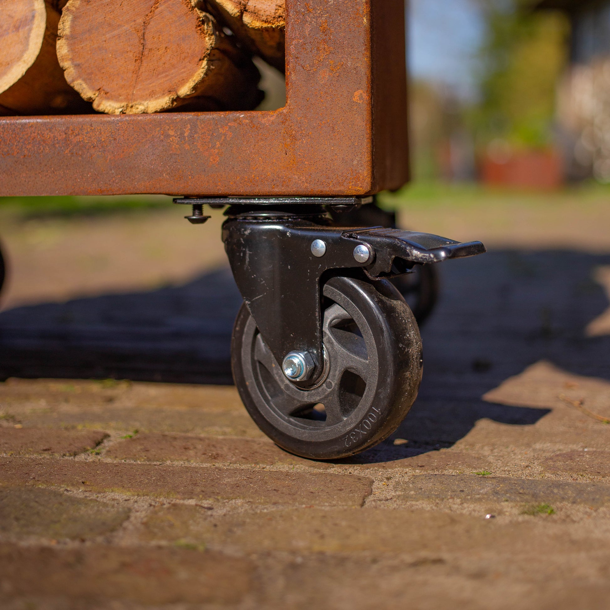 Vuurschaal of buitenhaard: Met een ideale hoogte van 93,5cm kunt u hem als vuurschaal gebruiken. Door zijn vorm en metalen bovenplaat geeft hij veel warmte en vanuit uw eettafel of tuin-set een prachtig zicht. Door de handige houtopslag heeft u altijd hout binnen handbereik en het oogt ook erg mooi.