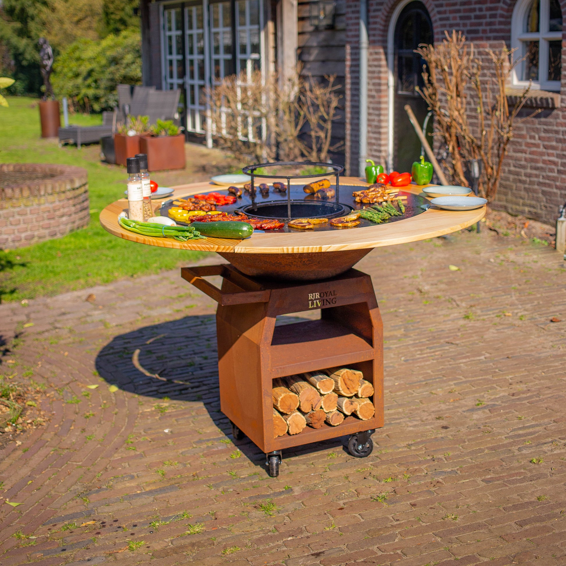 BBQ Plancha Grill Maestro XXXL Ø100cm Cortenstaal - Met Houten Omranding Mesa